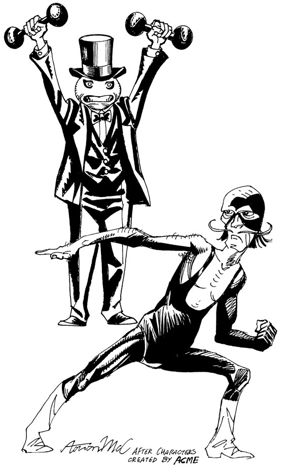 The following sketches are based on characters that my son created. He drew a couple pages of comics involving these characters. My son has a wonderful imagination and a such natural skill. You can get a little taste of his handiwork at his blog http://acmebytes.blogspot.com and he loves to receive comments on his artwork.