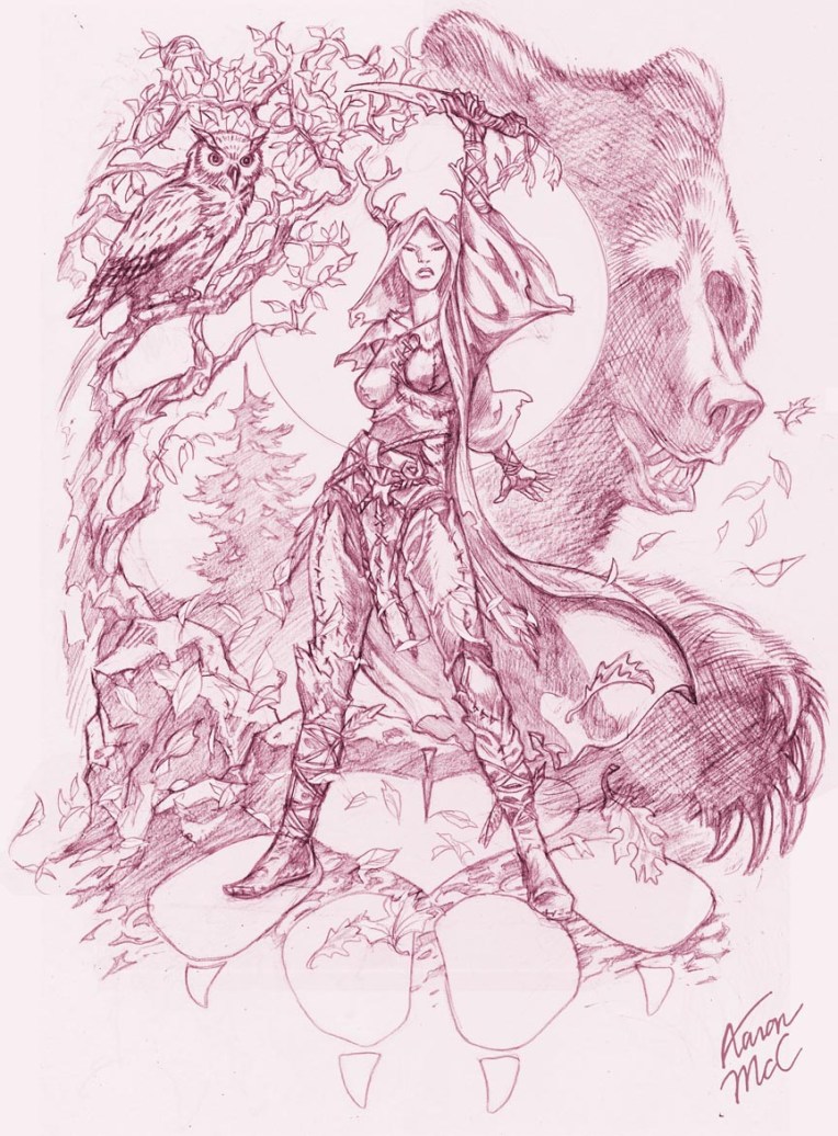 Introducing the High Druid. The teaser from the 13th Age press release states, “A champion of the Wild, the High Druid might shake the Empire to pieces or point to a new way to live.” Once again the evidence of Lee Moyer’s stunning painting talents are on full display. Below are my pencils and the early thumbnail version. Thanks for your interest. Check back for more developments on the art of 13th Age. In the meantime you can read descriptions of the Icons at Pelgrane Press, vote for your favorite, and even enter a contest.