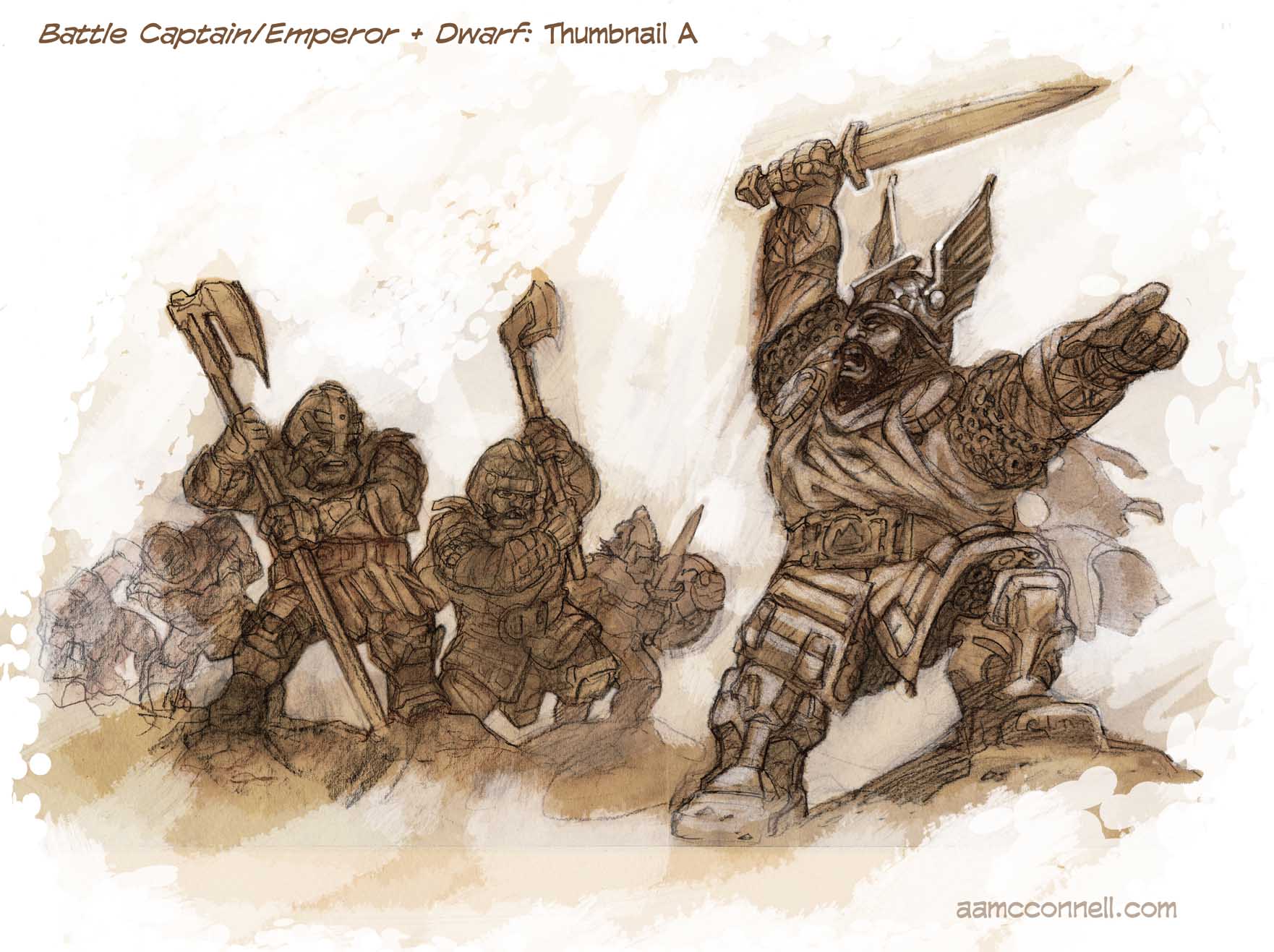 Behold, a dwarven commander whose troops carry the flag of the Emperor! Read Rob Heinsoo’s notes on the commander at this post.