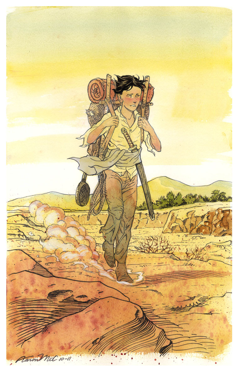 I’ve been working with writer S.A. Williams designing characters for his comic book series Ronin Revolver. Williams is currently raising funds on Kickstarter to hire an illustrator(s) to draw the stories. I invite you to check out the site and consider making a donation to the cause. Illustrators are often expected to draw pitches for low rates (and sometimes no rates!) and Kickstarter combats that less professional business practice by seeking an audience willing to invest in a project and provide the resources for artists to create their work. One immediate incentive for investing in Ronin Revolver is the acquisition of a print of one of my character drawings starting at the $7 pledge and 2 prints starting at the $20 pledge price. Here’s the character design for Ephram Tanner, the main character of Ronin Revolver. Learn more about the character and the story at Ronin Revolver Kickstarter.