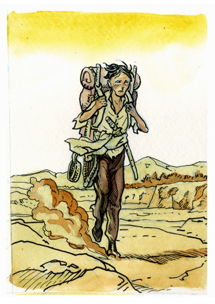 *Bonus material*: Here are my early sketches of Ephram and a preliminary thumbnail (4×6″) for the finished color piece above.
